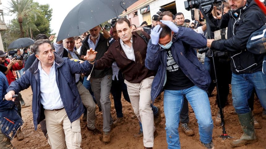 Au cours d’une matinée interminable, des informations ont circulé sur une supposée épidémie de tétanos causée par les restes d’animaux morts emportés par la boue. Simultanément, on alertait sur les risques d’une seconde DANA, dans le but très clair de décourager tout volontaire de se rendre sur place. Certains médias accusaient même ceux qui aidaient d’« agir de manière irresponsable », affirmant que leurs véhicules bloquaient les services d’urgence. Pendant que ce récit se construisait, plus de cinquante véhicules officiels escortaient le chef du Gouvernement et le roi, venus une semaine après la catastrophe uniquement pour l’apparence. Après avoir contenu leur indignation, les Valenciens ont clairement montré que leur présence était inutile. Et pourtant, certains ont tenté de transformer Felipe VI en héros de papier, s’appuyant sur la lâcheté évidente de Pedro Sánchez. Cependant, les deux ont fait figure de personnages parfaitement ridicules.